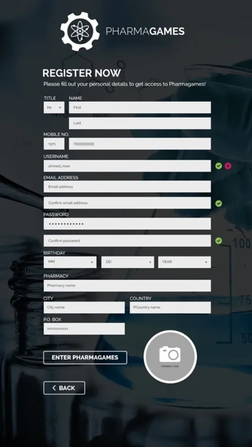 Chaque participant doit s'enregistrer avec le login de sa pharmacie et créer son profil, avec un nom d'utilisateur et un mot de passe choisis.