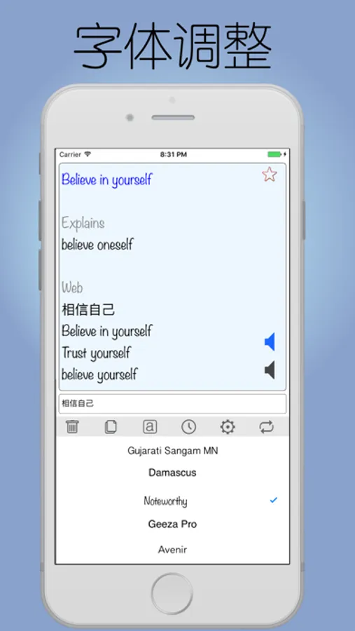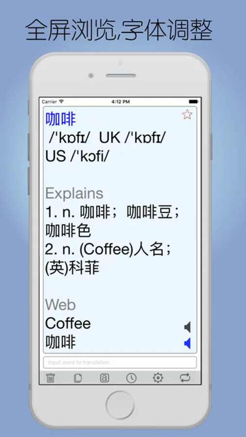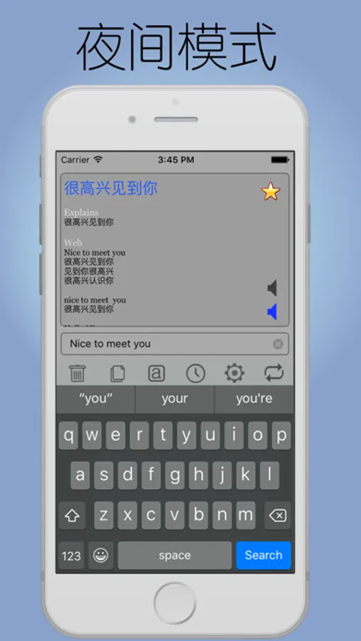 This online professional translation application is simple, compact, and highly efficient. The keyboard is always visible at the bottom of the screen, and commonly used translation functions are conveniently accessible as icons in the toolbar above the keyboard, allowing for easy operation with both left and right fingers.