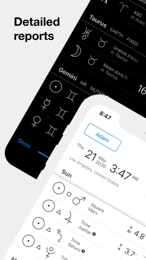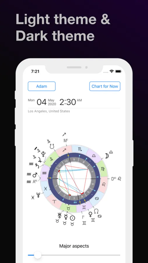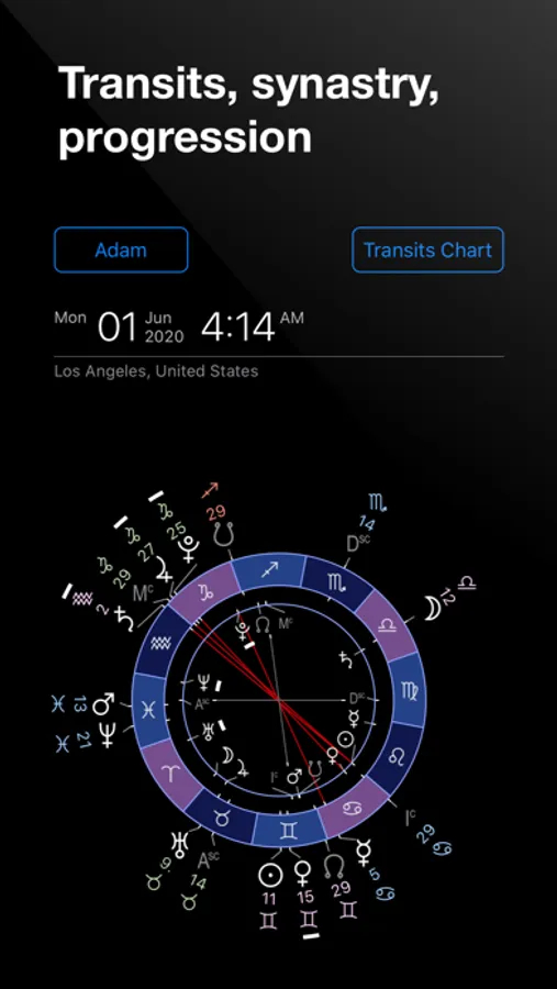 You can create an unlimited amount of personal astrological profiles. All data belongs to you and stored on your iCloud account. No login or registration required.