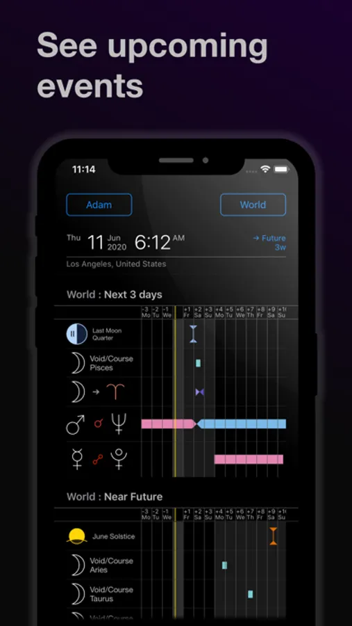 Time Nomad calculates your astrological transits, phases of the Sun and the Moon, movement of planets through the Zodiac.