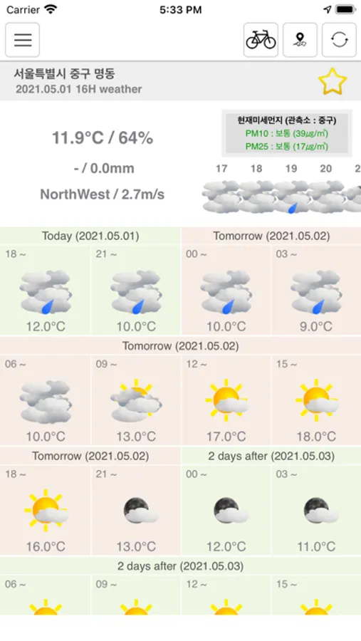 The forecast information is provided by K.M.A(Korea Meteorological Administration)