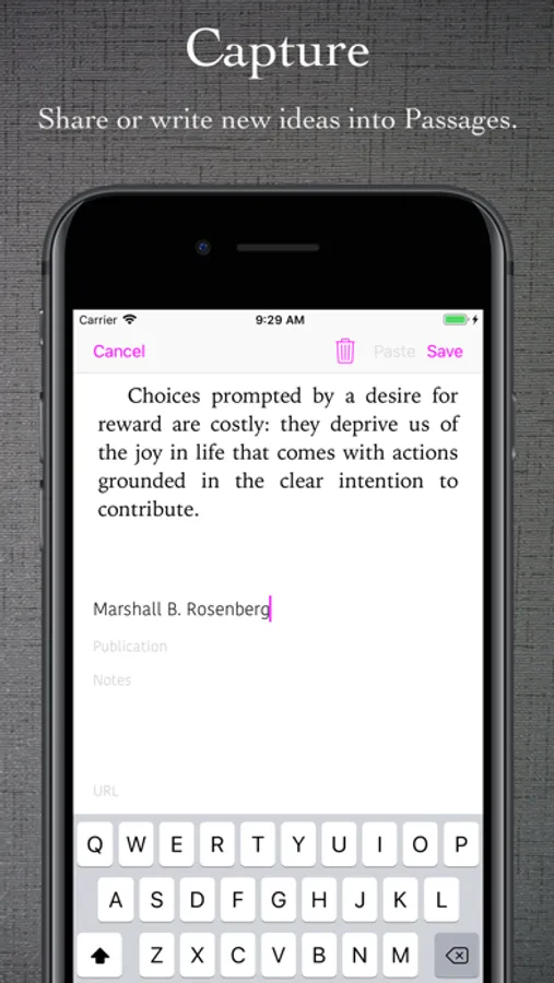 - A share extension so you can easily capture quotes from reading apps and the browser