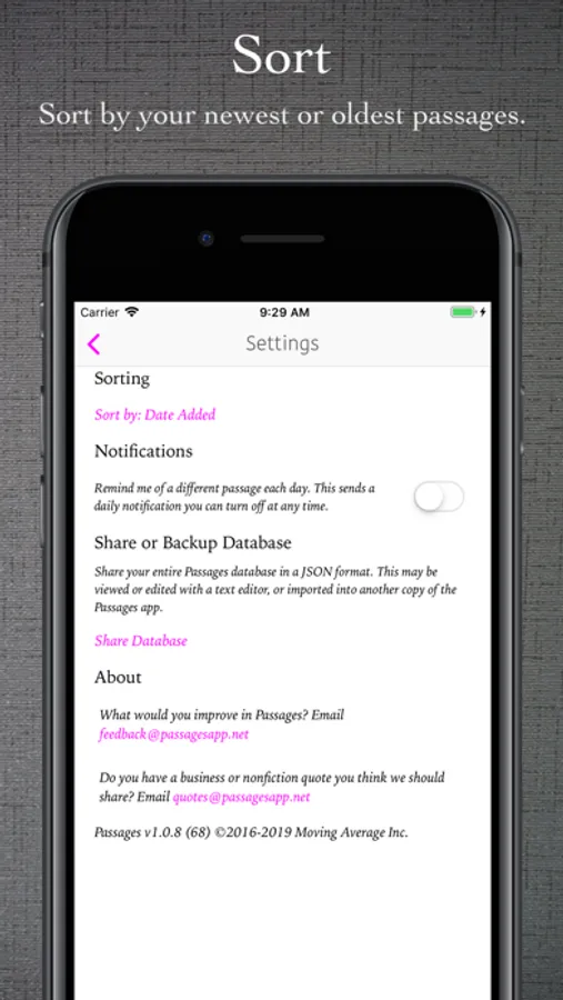 Do you highlight your books? Are you a life-long learner? Passages stores your quotes and notes in a searchable app you can store in your pocket. Instead of leafing through piles of books and hundreds of pages, you can find your notes in seconds..