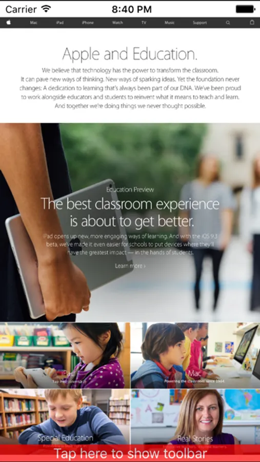 Surf the web in Full Screen. 40% more screen space available compared to normal web browser!
