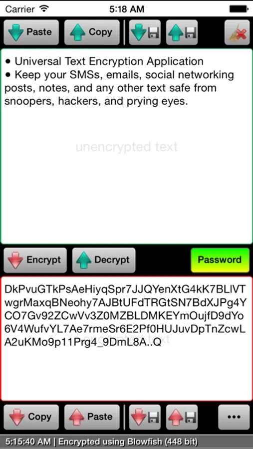 • This app does not function as a "Vault application". Instead, a password is set for the current encryption/decryption session, not to enter the app itself. You may have an unlimited number of passwords for any purpose—different files, tasks, people, etc.