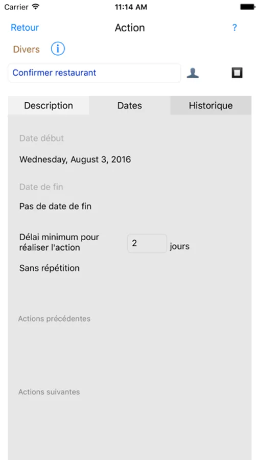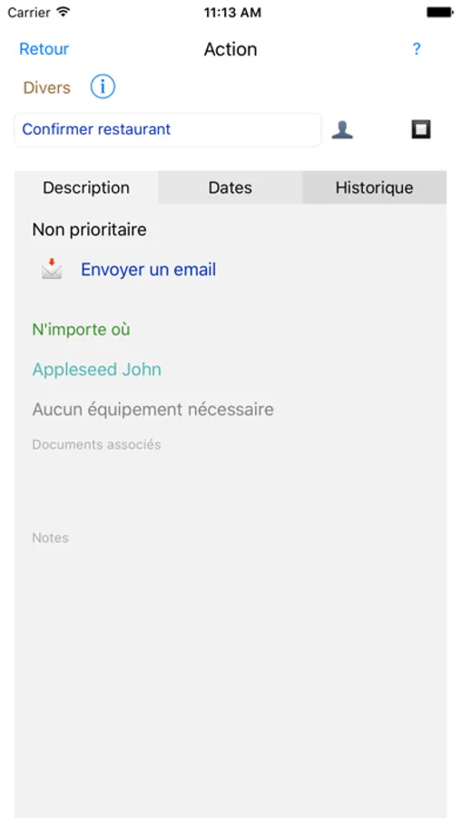En sélectionnant un type d'action, vous améliorez votre productivité : envoyer des emails, téléphoner, évoquer des sujets avec quelqu'un, parler de sujets en réunion, traiter des actions ou les planifier dans l'agenda.