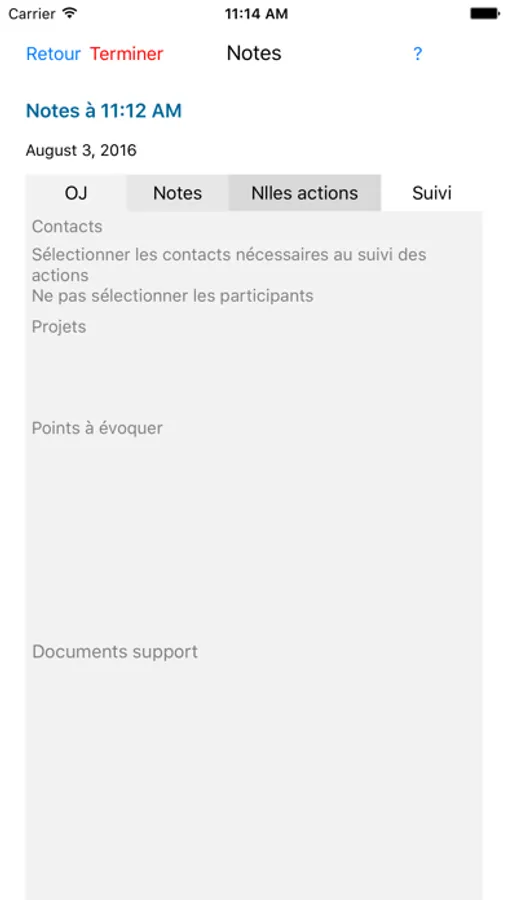 LES NOTES : Elles vous permettent de gérer vos actions ou celles de vos contacts en réunion. Pour préparer vos réunions, précisez les projets qui seront discutés et/ou le contact avec qui vous faites le point, l'onglet ‘suivi des actions’ listera les actions attendues.