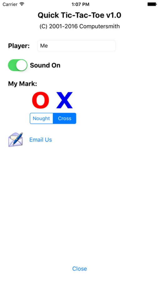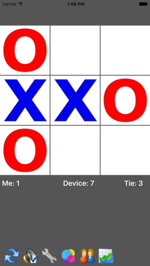 Pick your symbol (an "O" or an "X") & try to beat your device or your friends by getting 3 in a row.