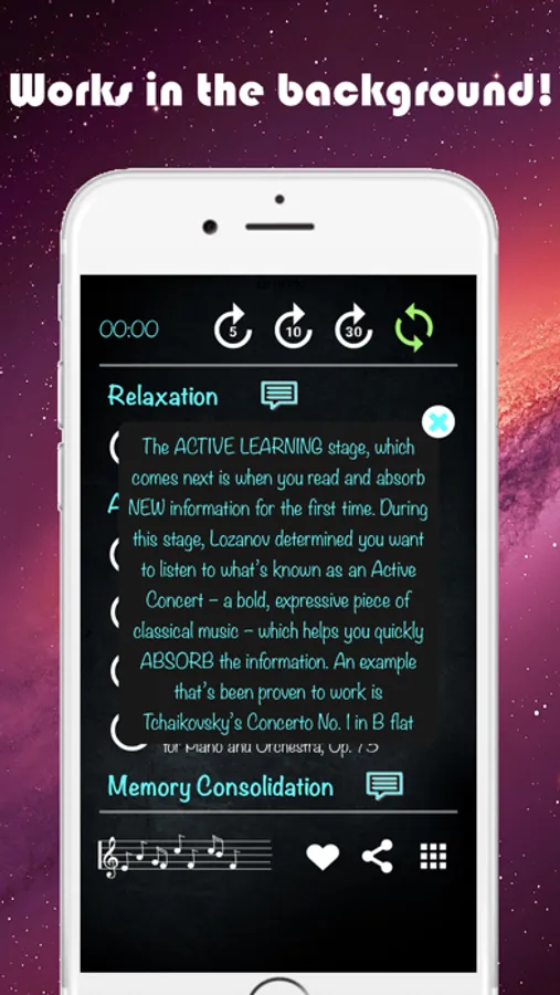 During this stage, you want to study to what’s known as a Passive Concert — a melodic, baroque piece of classical music – which helps CONSOLIDATE the information into your long-term memory.