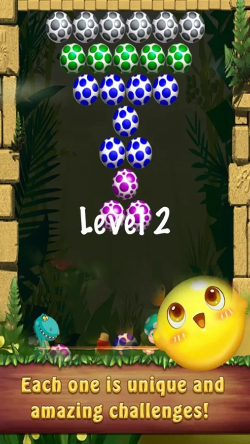 In puzzle mode tap on screen to shoot eggs to make a match of three or more same coloured eggs to make them drop and clear all the Eggs on the board to enter next level.