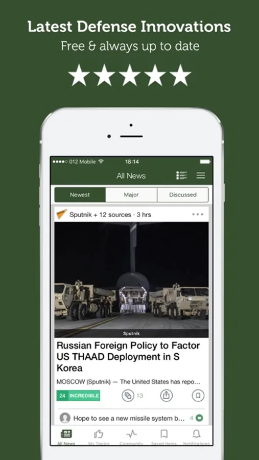 Stay on top on all the defense tech and gadgets! News, videos, reviews, releases, future plans and more! Land, Naval, Air, Cyber, Policy, Simulations, anything you're looking for you'll find here! The top sources of the web all in one awesome app!
