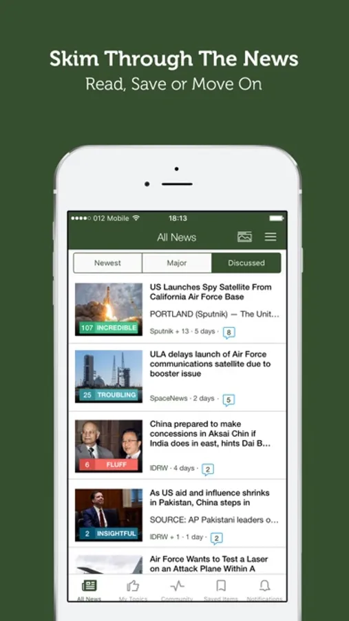 - Your very own news feed - choose the topics you want to follow and/or the topics you want blocked! Don't bother yourself with news that don't interest you!