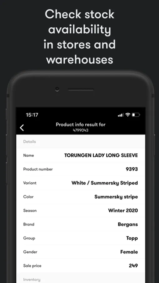 - Scan an item and get stock availability for all sizes in all stores. Including your online store.