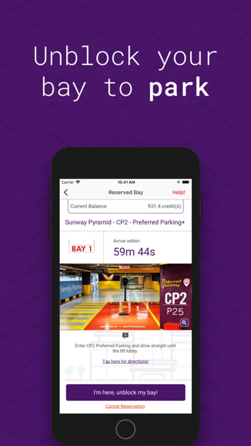 Step 3 - Your bay will be reserved by a parking lock. Tap 'Unlock' in the app to unlock it and park, easypark!