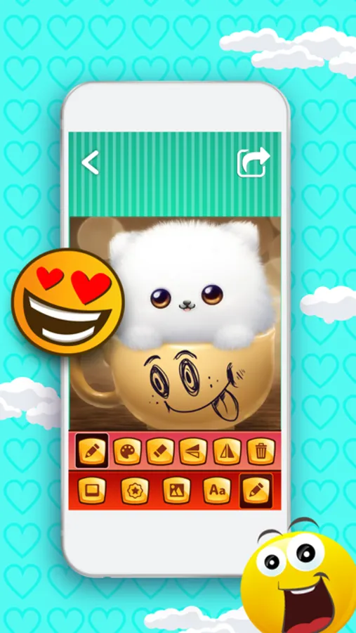 All that separates you from a brand new picture that you can share via Facebook, Twitter, Instagram and other major social networks is your beauty camera and a free download of Funny Photo Editor with Emoji Stickers Camera. Show off your creative side and make the funniest pictures imaginable with the help of this photo app.