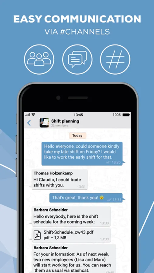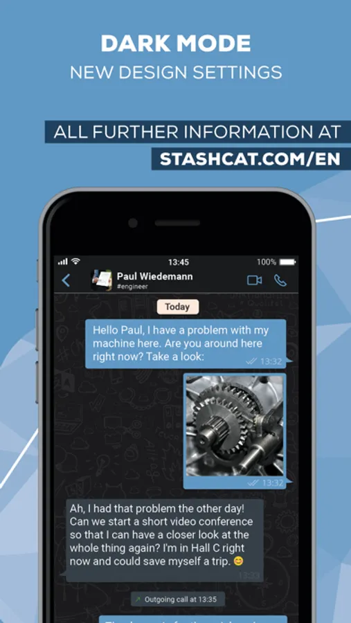 Your app, our technology: Use stashcat® in your particular company layout and offer your employees and customers an effective way to communicate with each other, regardless of time and place.