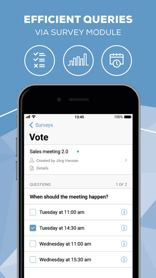 Survey module: create appointment queries or evaluations in the question-answer-principle.