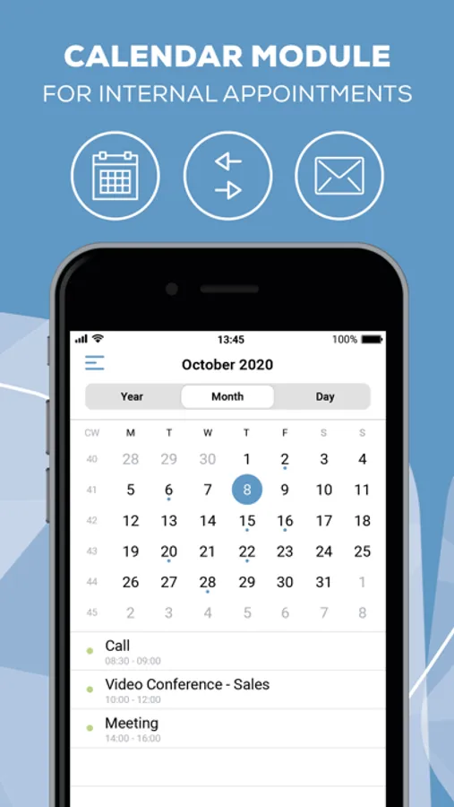 Calendar module: Appointments can be made privately or publicly, shared in channels with the ability to accept or cancel for members of the channel.