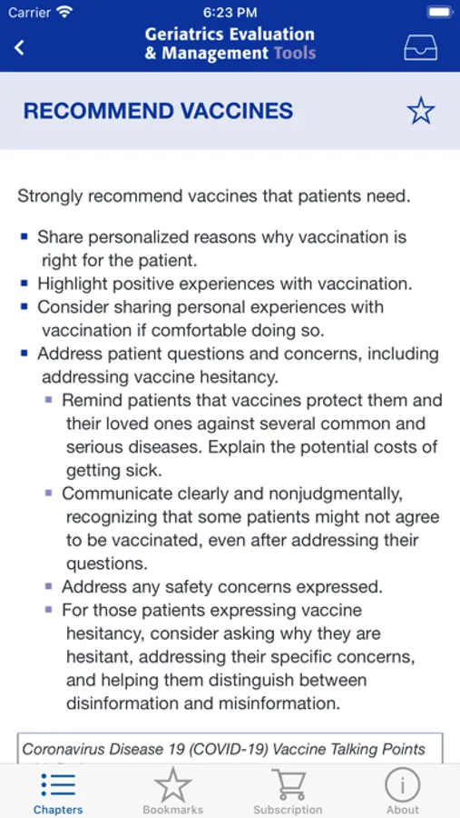 Download the AGS Geriatrics Evaluation & Management Tools App and access the templates on Immunizations and Telehealth for free and then subscribe to access all of clinical topics available in this convenient App.