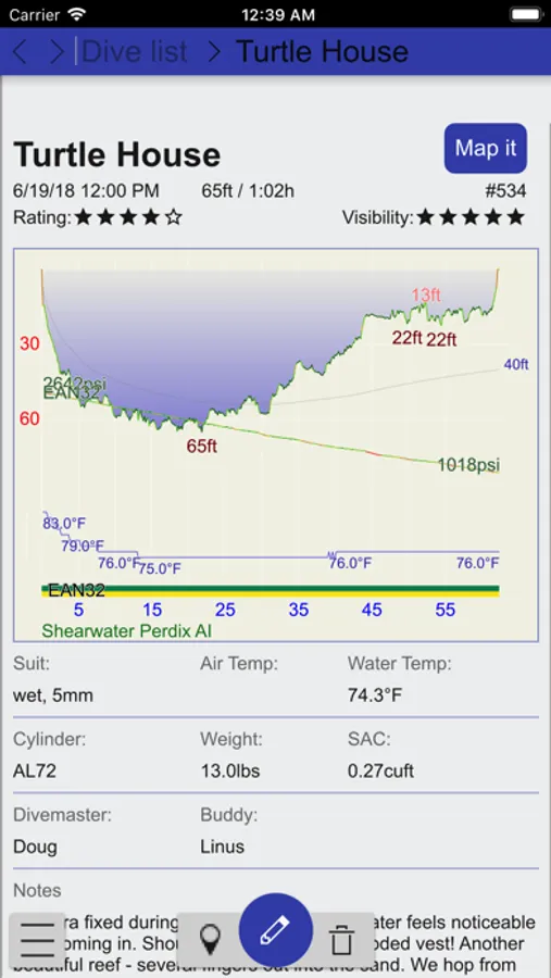 Subsurface-mobile is an iOS dive log application based on Subsurface, the best free open source dive log application available on Windows, Mac and Linux. Subsurface-mobile allows you to access your dive log on your tablet or phone, edit the data and even download new dive information from many Bluetooth LE enabled dive computers. Using a free Subsurface Cloud Storage account you can synchronize your dive data with the Subsurface desktop application (while significantly increasing the usefulness, the cloud account is not required to use Subsurface-mobile).