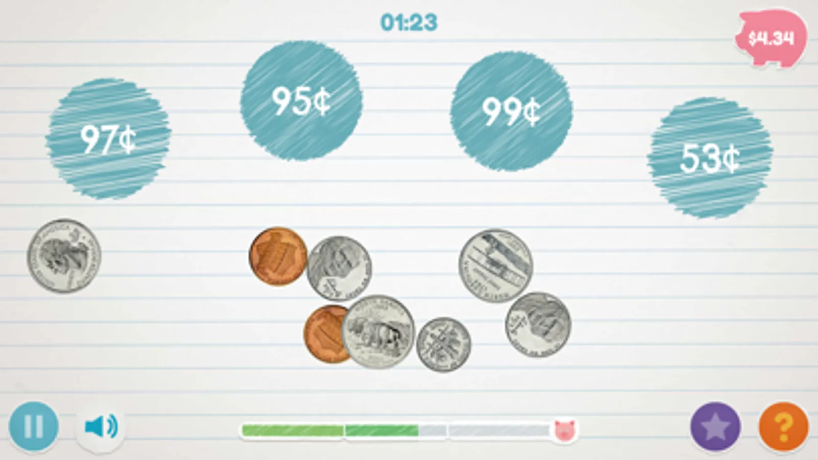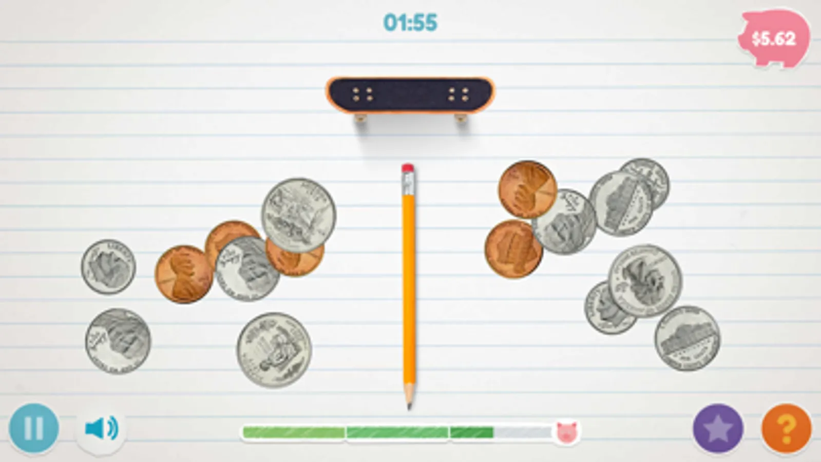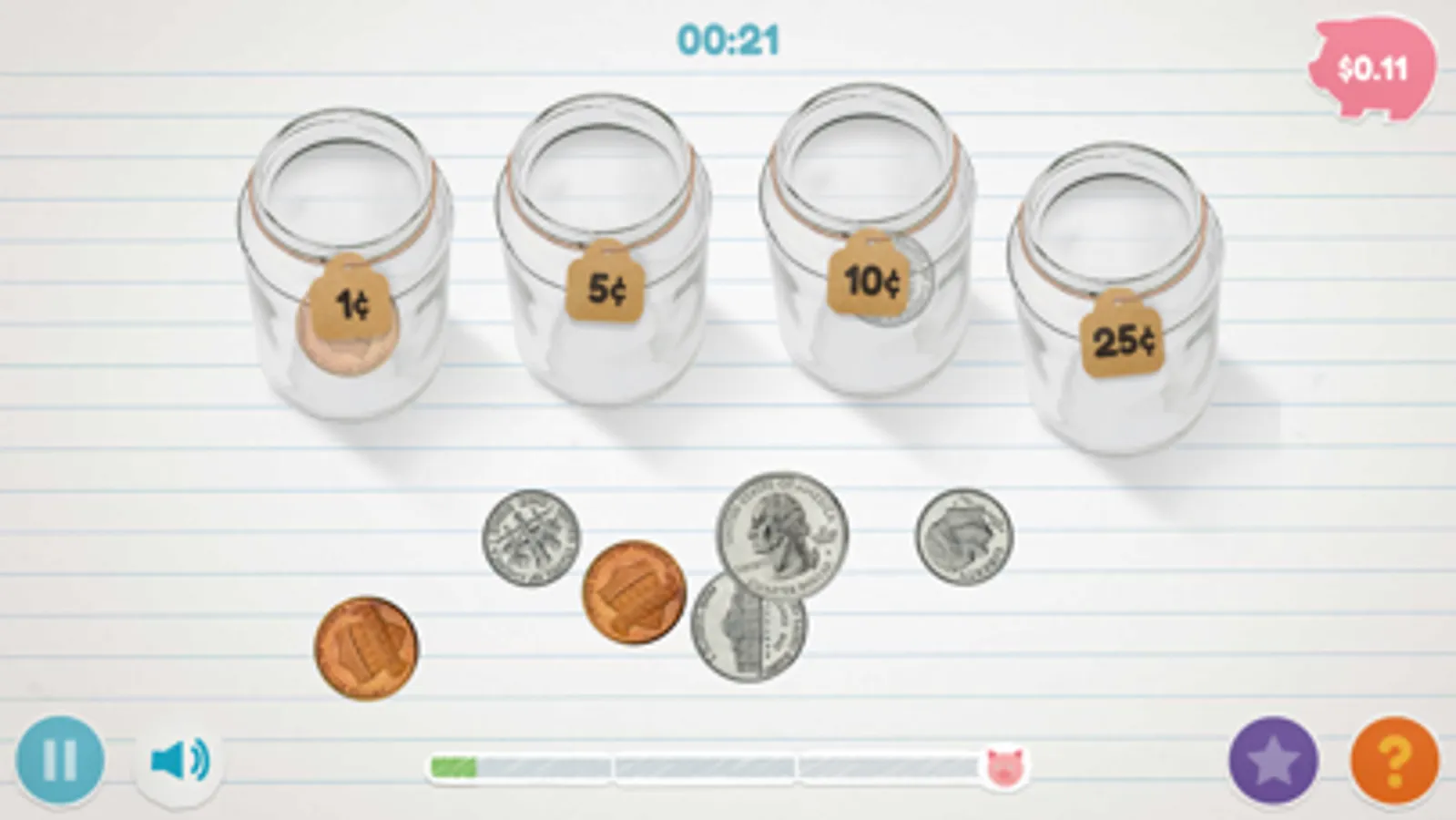 • Test your coin counting skills playing three fun games (Value of Money, Count Off, Which is Greater?)