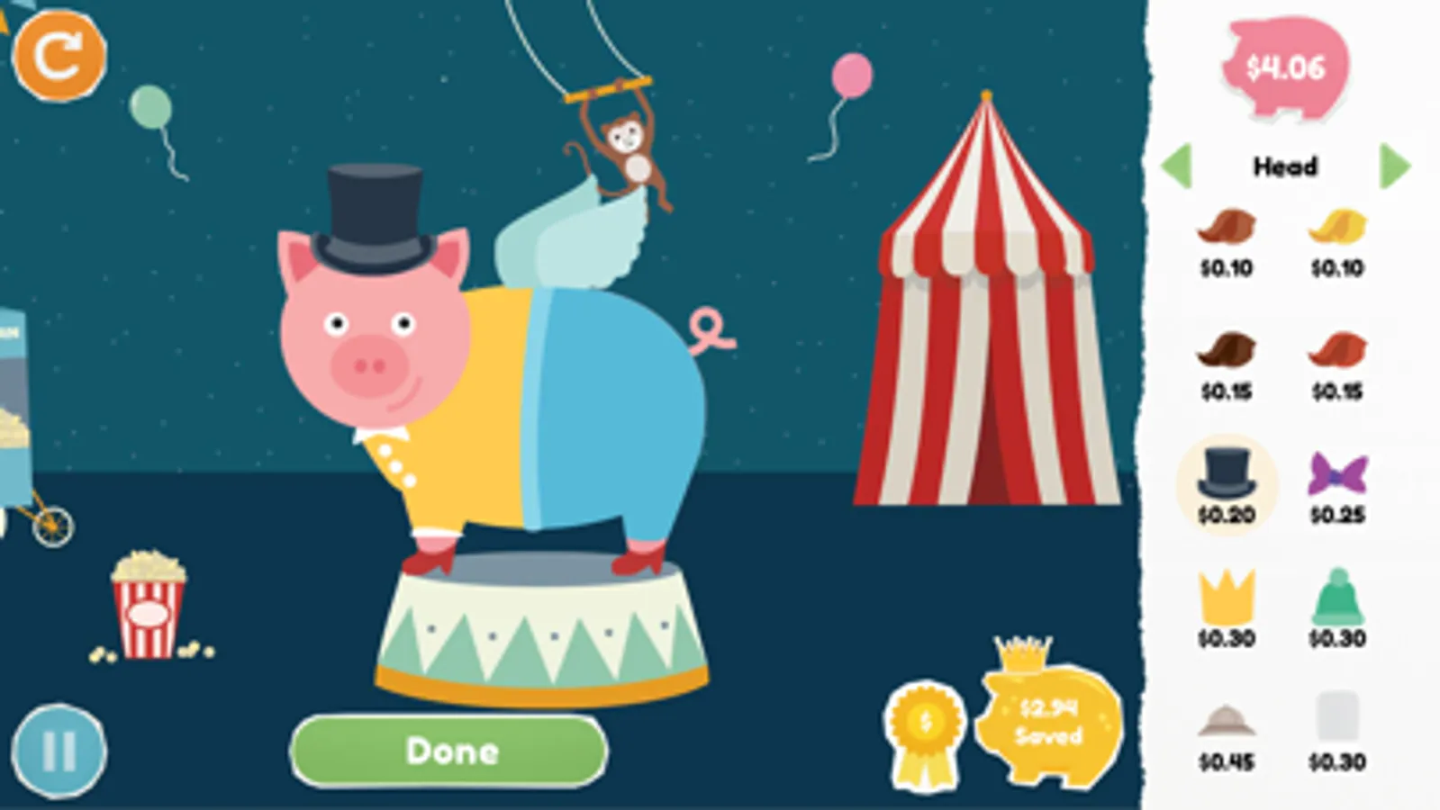 This educational game allows young kids to help Peter Pig count and sort coins. It can help them develop important money skills. Children learn to make purchases within a budget, put money aside for savings and are rewarded for good saving habits. Features include three interactive games, fun facts about money, savings tips, a trip to the virtual store where kids can buy accessories to dress up Peter Pig and save a photo to their device.