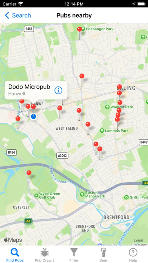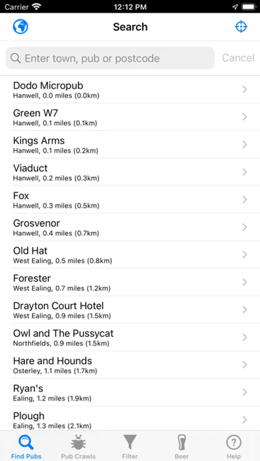 When you create a pub crawl, Pub Crawler works out the distance between each pub and lets you see the pub crawl on a map so you can plan your route if you plan to visit more than one pub.