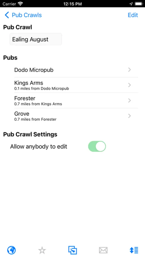 Pub Crawler lets you search for pub crawls that other people may have created in places that you plan to visit.