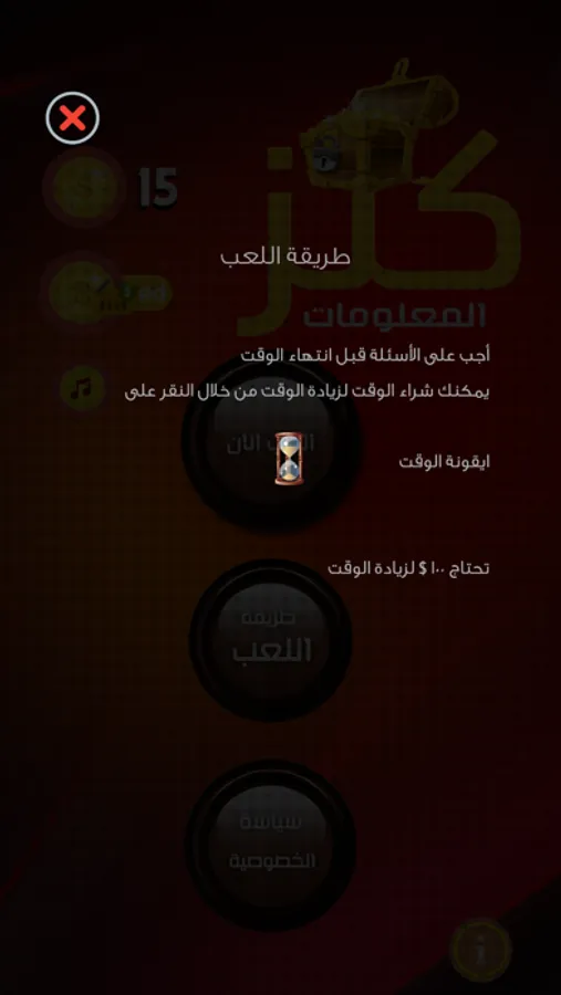 أجب عن الأسئلة قبل إنتها الوقت المحدد لكل سؤال، يمكنك شراء وقت إضافي باستخدام ايقونة الوقت قبل انتهاء الوقت.