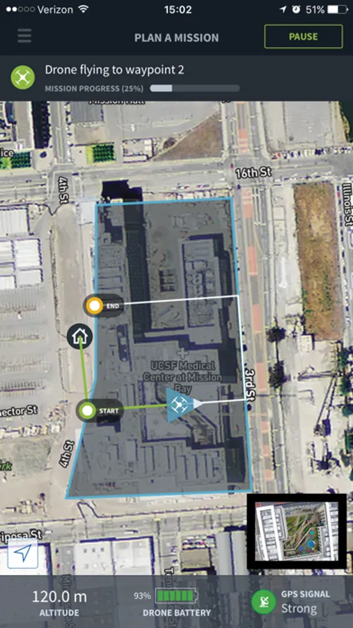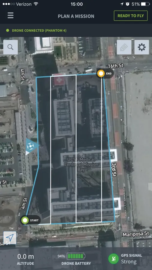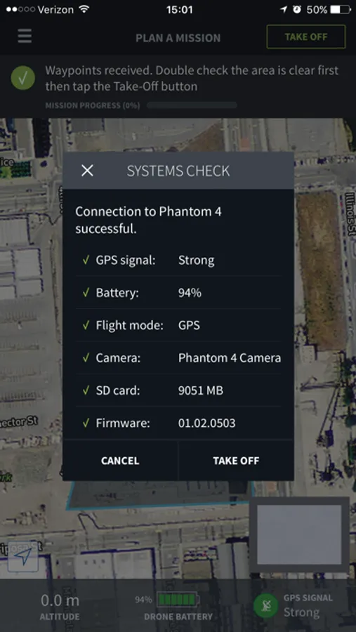 2. Tap TAKEOFF to send your mission to your drone. Drone will complete mission autonomously.