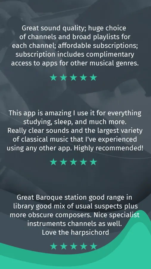 ClassicalRadio.com offers 50 channels of curated classical music ranging from the Medieval Period to contemporary performances by todays brightest artists and composers. Our channel selection includes curated selections from the world's most renowned composers, a variety of classical periods, favorite instrumentals, theatrical performances, and orchestral works.