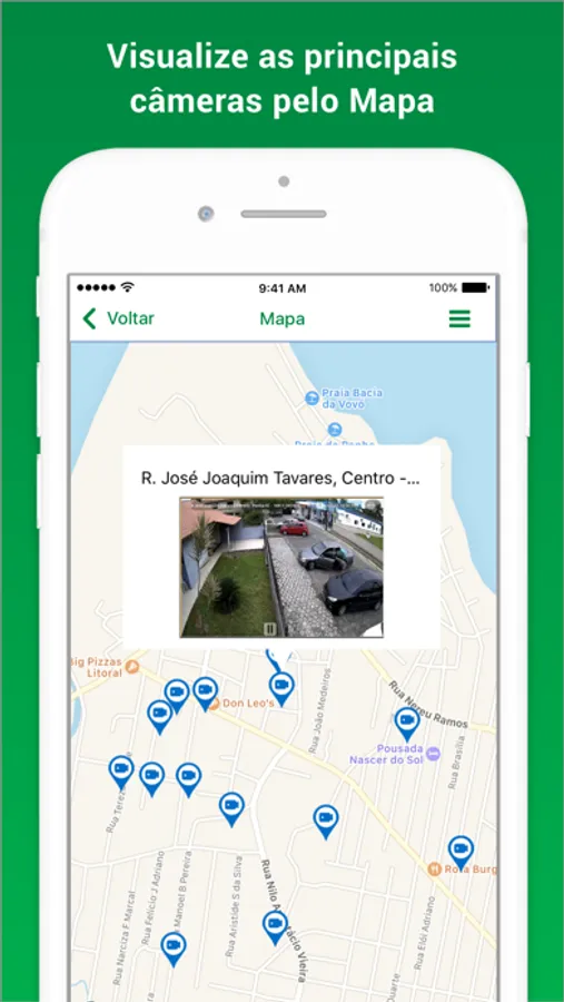 - Na ferramenta mapa você terá acesso à todas as ocorrências registradas no bairro com vídeo e fotos, saberá a localização de câmeras, conhecerá os locais úteis de utilidade pública sempre atualizados para a realidade local.