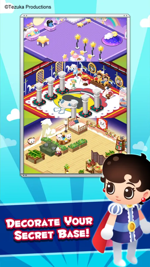 - Build your secret base with a variety of colorful Tezuka-themed collectibles