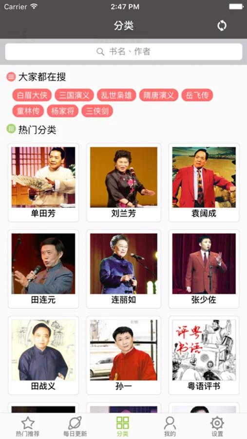 评书大全汇集各类评书作品,提供袁阔成、单田芳、刘兰芳、田连元、连丽如等众多评书表演艺术家的经典评书,支持我们赶快来下载吧。