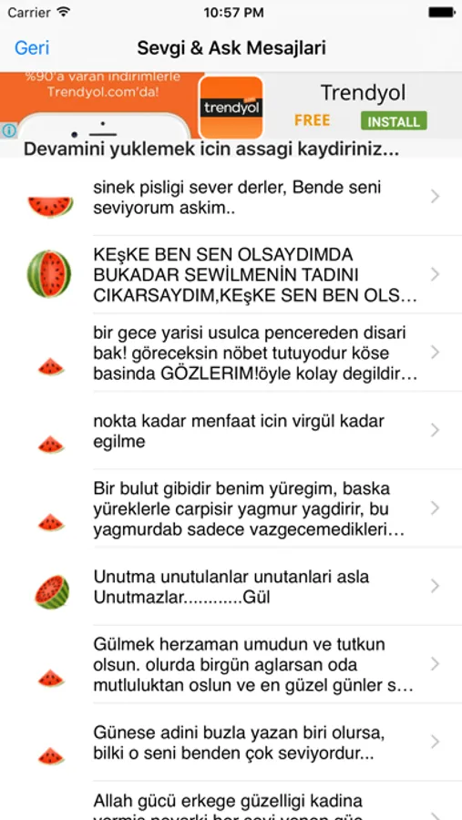 Uygulama karpuz diliminin buyuklgune gore calisan bir puanlama sistemi kullanmaktadir, buyuk dilim populer sms anlamina gelmektedir...