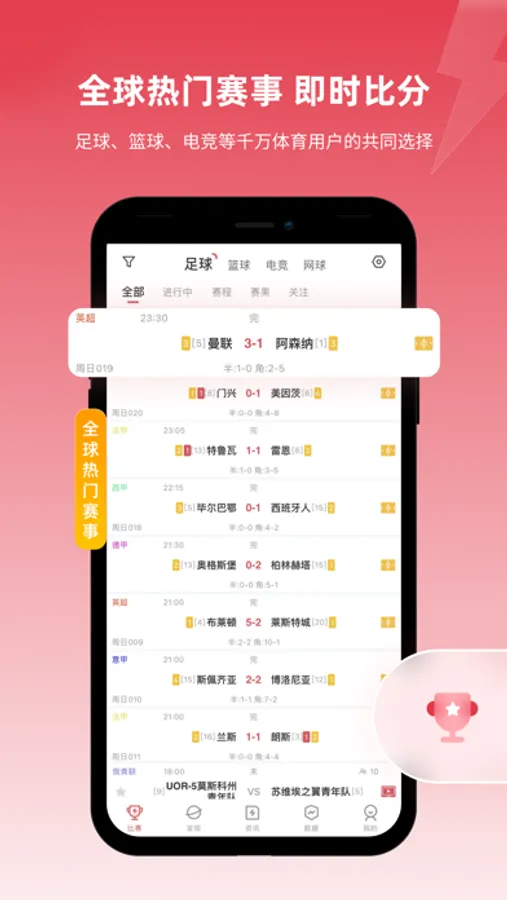 【即时比分】足球篮球网球比分实时更新,无需守在视频直播前,即可快速了解多场足球篮球比赛的实时赛况、比赛结果等信息。