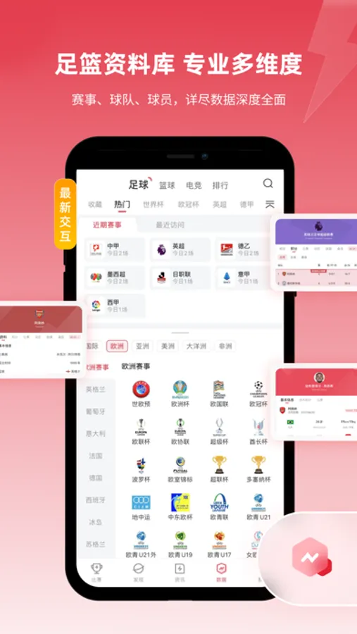 【足篮资料库】供用户查询各类球队、球员、赛事资料,来这里查询你喜爱的球队、球员的资料吧