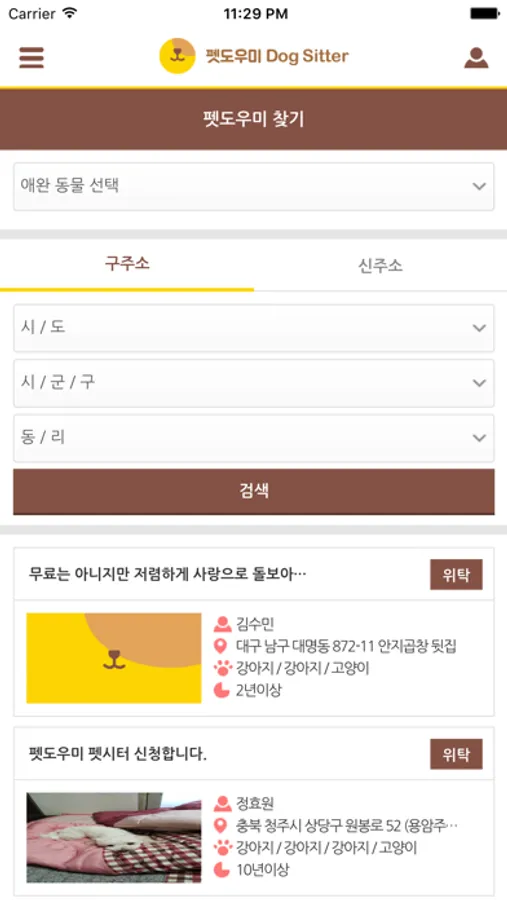 펫도우미는 지역검색 및 위치기반 서비스를 통해