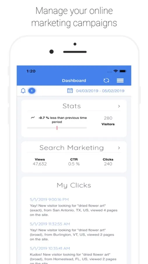 My Site Analytics provides an easy and effective way to manage your online marketing and sales directly from your smartphone. You can keep track of your online marketing campaigns, view your website stats, and monitor your spend in just 5 minutes. My Site Analytics notifies you of new leads and lets you get back to them while on the go, so you never miss a chance of closing a sale!