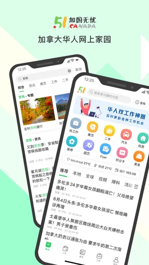 加国无忧全力打造的加拿大华人生活服务类手机客户端。