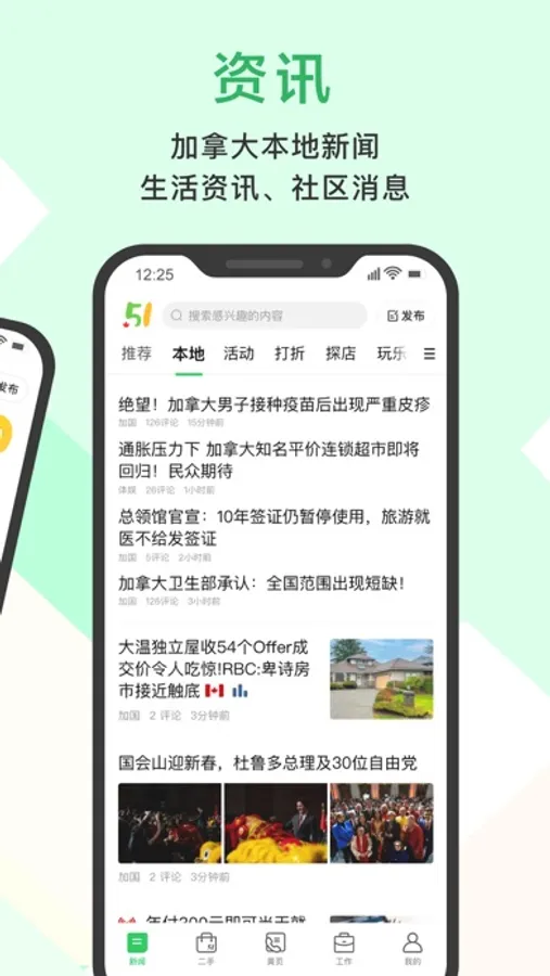 除新闻资讯外,加国无忧51app,还集合了加拿大生活黄页、美食、房屋租赁、求职招聘、二手闲置物品交易等贴心的周边服务,覆盖以多伦多为主的加拿大安省多个城市,深受用户的欢迎和热捧。