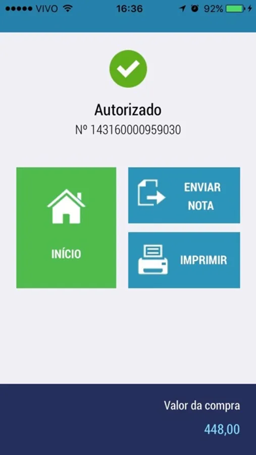 • A nota fiscal é emitida e transmitida para a SEFAZ automaticamente ao concluir a venda.