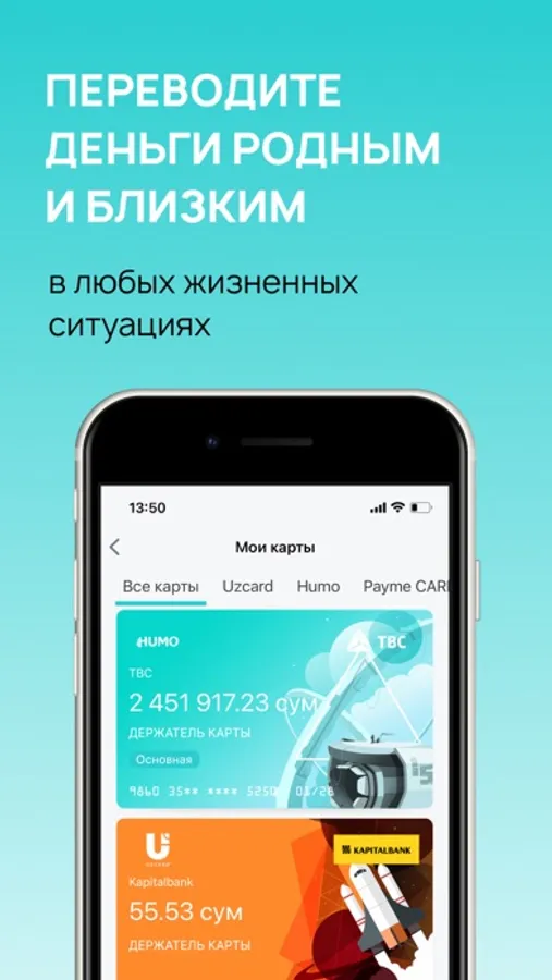 - Переводы по номеру карты, номеру телефона, QR коду и персональной ссылке.