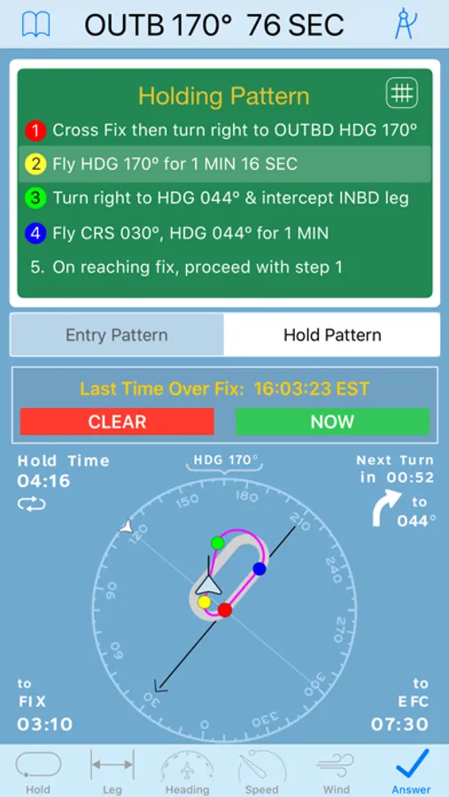 This app takes a step-by-step approach when entering holding data, using individual screens for each component, making it easier to focus on one element at a time while continuing to fly the airplane.