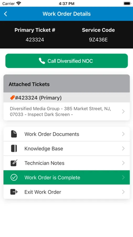 DivTech app integrates with Diversified Ticketing Software. The app gives "authenticated" technicians access to work order details, scope of work document and tickets. You can upload photos to a ticket from your photo library as well as update the status of assigned tasks. You can view the list of parts and tools required and access Knowledge base articles relevant to the service visit. In order to access these features, you must be working with a company that utilizes Diversified Ticketing Software.