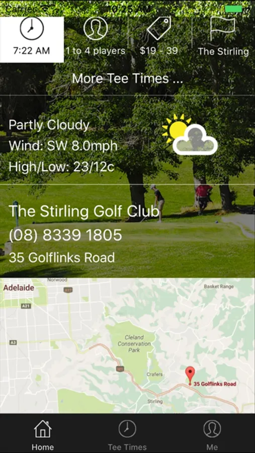 The Stirling Golf Tee Times app provides tee time booking for The Stirling Golf Club in Stirling, South Australia with an easy to use tap navigation interface.