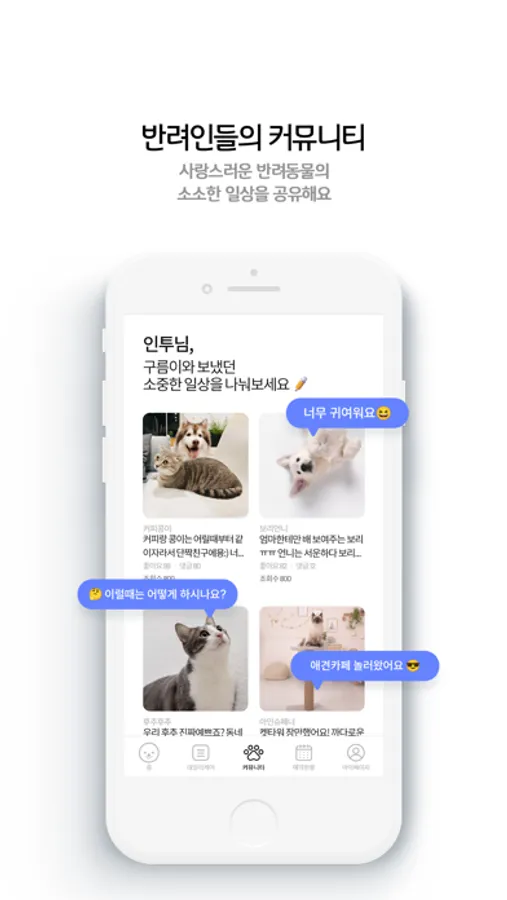 - 케어를 통해 미용/목욕/양치 등 다양한 항목들을 편하게 관리할 수 있습니다.