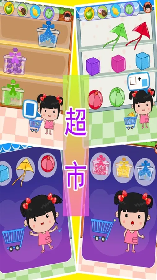 最后去了玩具店,依照颜色和形状的提示买到相应的玩具,这是认识颜色和形状的小游戏。