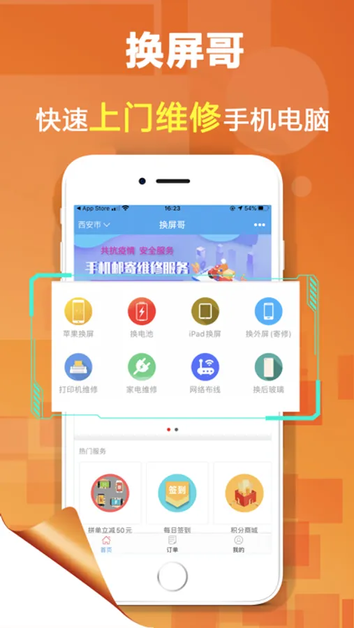 注册即送优惠券,APP上快速下单、预约工程师上门换屏,修手机,修电脑,数据恢复!