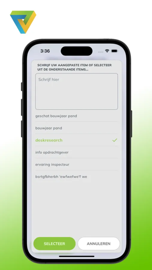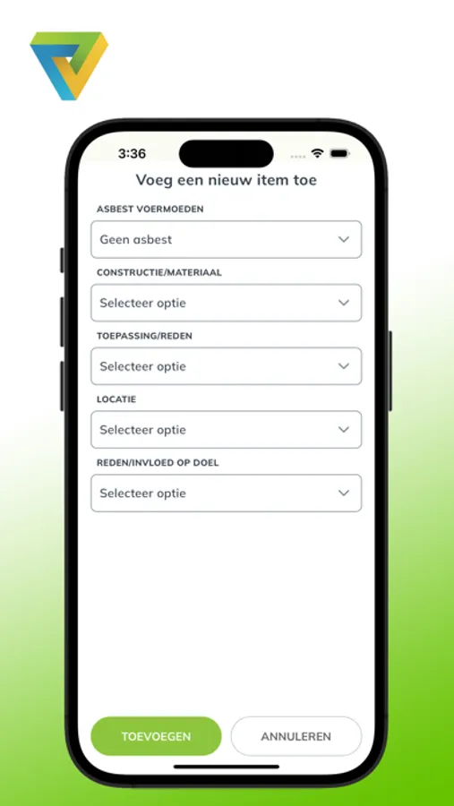 The fully renewed asbestos survey App. App suited for both phone and tablet and can be used in both the Dutch and English language.